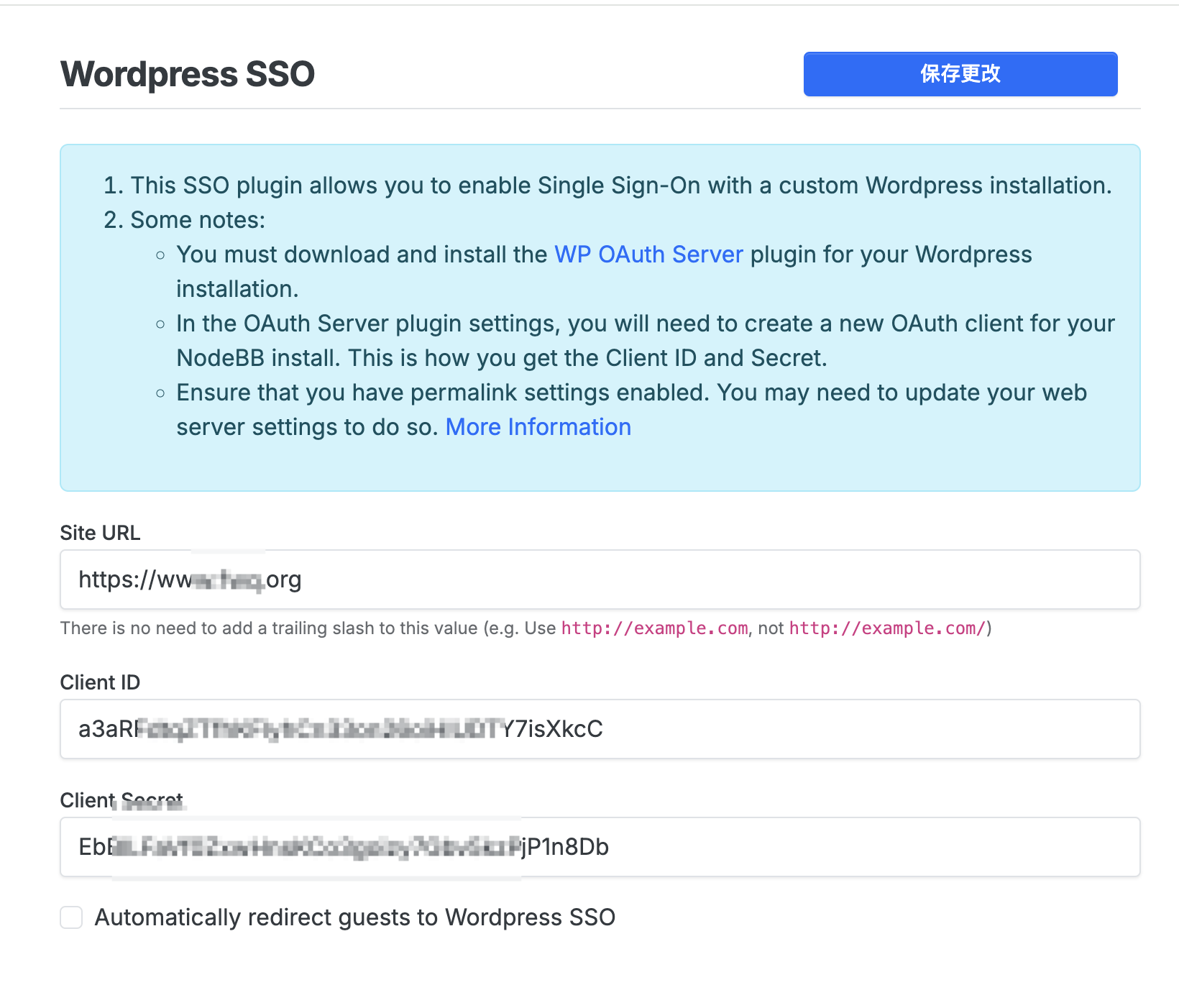 插件nodebb-plugin-sso-wordpress 用自建WordPress站账号登录